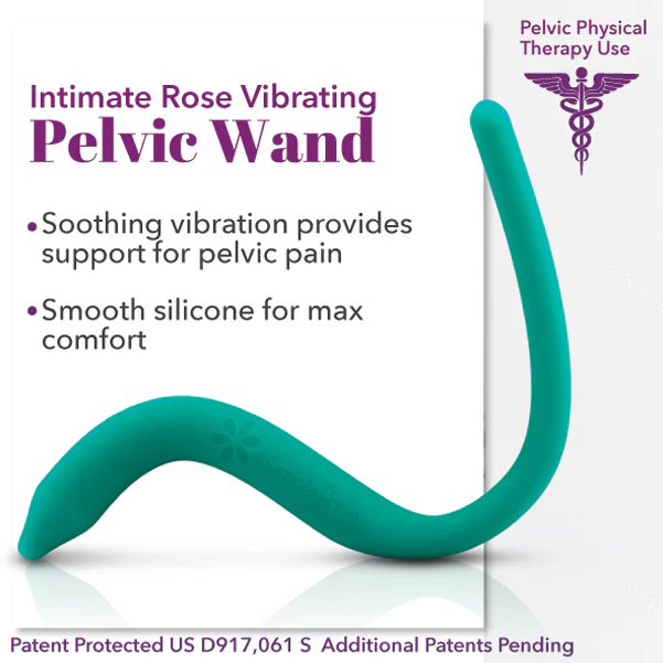 The Intimate Rose Vibrating Pelvic Floor Wand is perfect for women experiencing pelvic and pelvic floor pain, endometriosis, pelvic floor tension, tailbone pain, vaginismus, painful intercourse, vaginismus, vestibulodynia and levator ani syndrome. Includes 10 modes of vibration, designed to help relax muscles while improving blood flow and support for pelvic muscle pain.